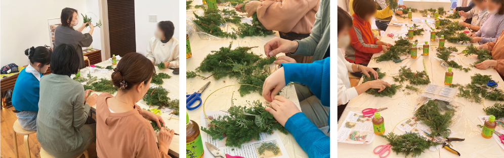 11/15(土)、Labo西宮モデルハウスにて『三日月型のフレッシュXmasリース教室』を開催いたしました。