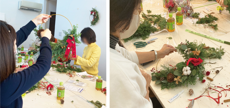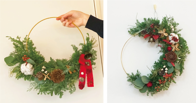 トップページ > スタッフブログ > 三日月型Xmasリース教室を開催いたしました🎄