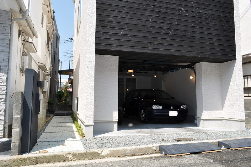敷地面積23坪の三方向隣地に囲まれた狭小地で明るいリビングを実現!ガレージ付の3階建て住宅です。1階はビルトインガレージと玄関と客間の和室、2階は家族が集まるLDKと大きな窓のあるバルコニーと水回り、3階に3部屋。キッチンや収納扉、TVボードを造作しセンス良くすっきり暮らせる工夫をしています。壁は石灰クリームを塗りました。住まい手のたくさんの夢を建築士のデザイン力で形にした大満足の住まいです。