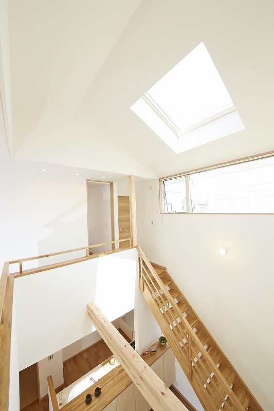 自然の力を上手に活かせるようにデザインした、人にも環境にもやさしい『 パッシブエコ・スタイル 』のお家です。陽の光や風の流れを上手に採り入れる間取りや開口計画により、出来るだけ空調などの設備に頼らず、夏は涼しく、冬は暖かい快適な室内空間を実現しています。