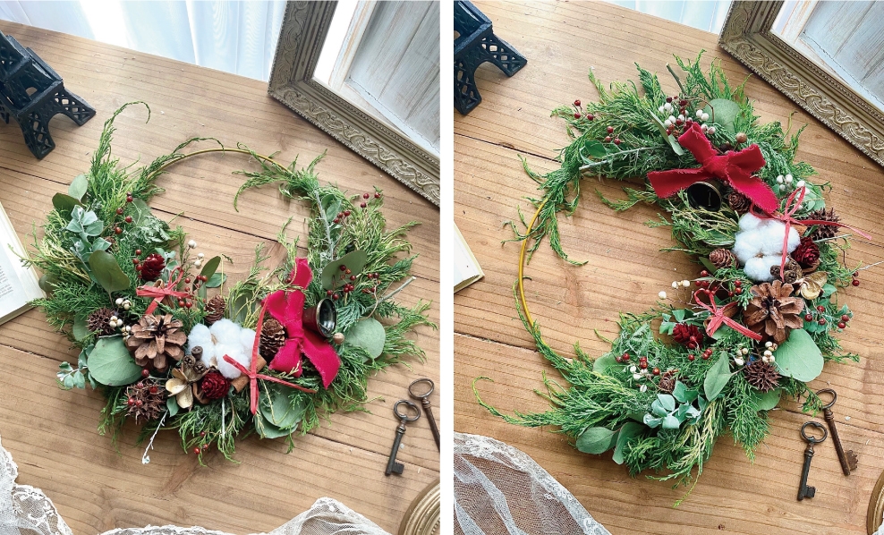 向きを変えると別デザインのリースをお楽しみ頂けます♪